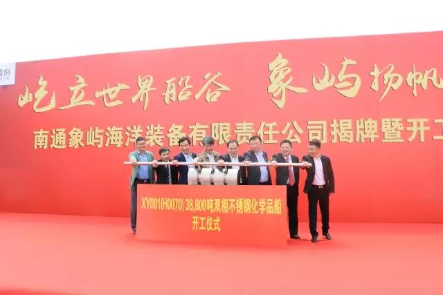 首制船“XY001”號(hào)38800噸不銹鋼化學(xué)品船同期開(kāi)工。江蘇省經(jīng)信委副主任、國(guó)防科工委主任秦雁,南通市委常委、通州區(qū)委書(shū)記宋樂(lè)偉,南通市副市長(zhǎng)徐新民,通州區(qū)區(qū)委副書(shū)記、區(qū)長(zhǎng)陳永紅,華融航運(yùn)金融租賃有限公司總經(jīng)理樊旭平,象嶼集團(tuán)總裁陳方,中海重工董事局主席李明,南通象嶼副董事長(zhǎng)朱建華,共同推動(dòng)38800噸不銹鋼化學(xué)品船開(kāi)工桿!