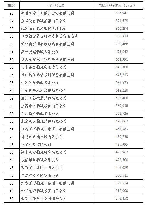 2018年中國物流企業(yè)50強名單