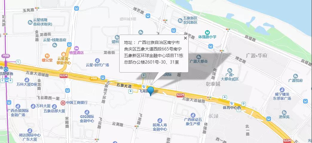 公司地址|廣西壯族自治區(qū)南寧市良慶區(qū)五象大道西段665號南寧五象新區(qū)環(huán)球金融中心項(xiàng)目T1棟總部辦公樓2601號-30、31室
